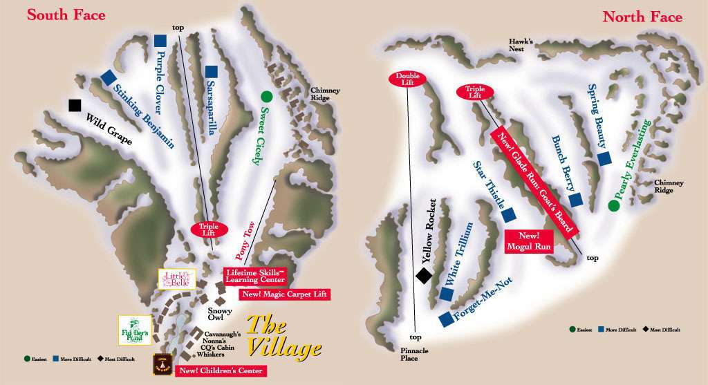 There are 10 trails (9 downhill ski runs) at the ski resort that range from beginner to intermediate, served by 2 lifts. The resort averages 50 inches of snowfall and 100 days skiable. With a summit of 3,200ft, the mountain offers 700 feet of vertical drop. The longest run is 4,200 feet.