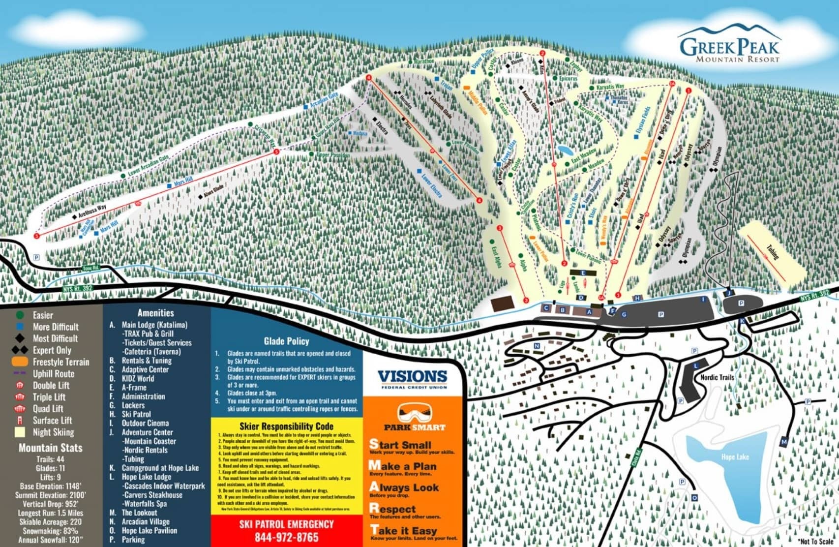 View the trails and lifts at Greek Peak with our interactive trail map of the ski resort. Plan out your day before heading to Greek Peak or navigate the mountain while you're at the resort with the latest Greek Peak trail maps.