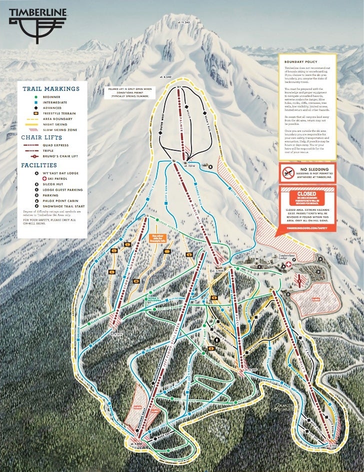 View the trails and lifts at Timberline Lodge with our interactive trail map of the ski resort. Plan out your day before heading to Timberline Lodge or navigate the mountain while you're at the resort with the latest Timberline Lodge trail maps.